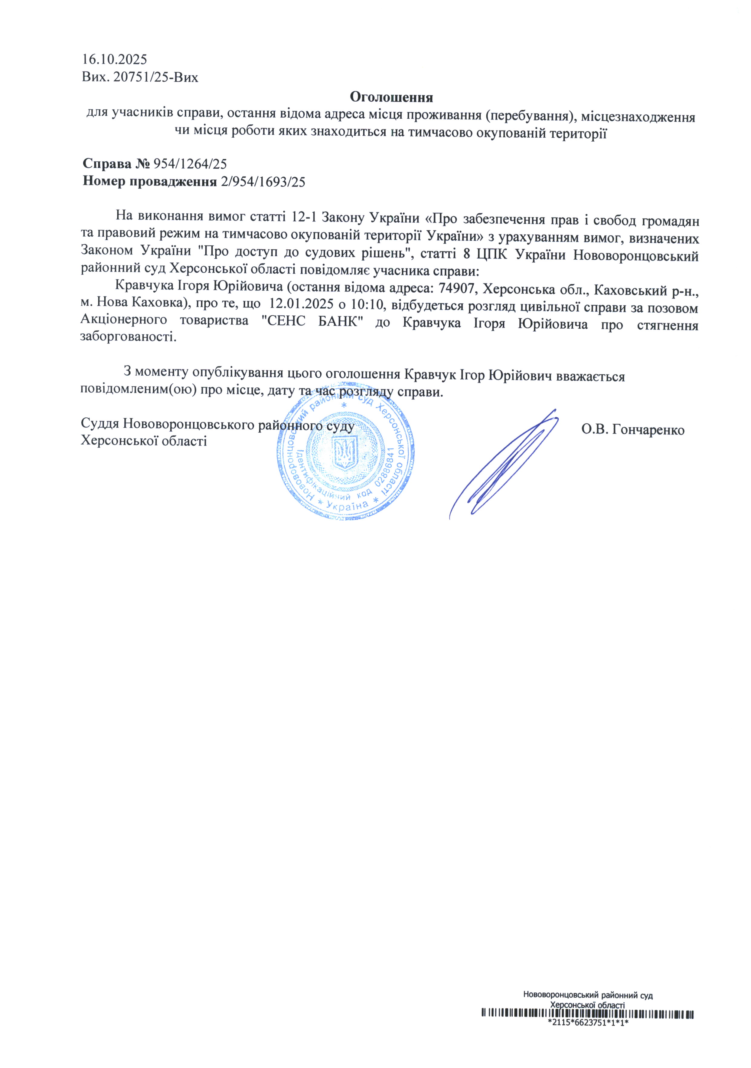 До суду викликається Кравчук Ігор Юрійович на 10-10 12 січня 2026 року