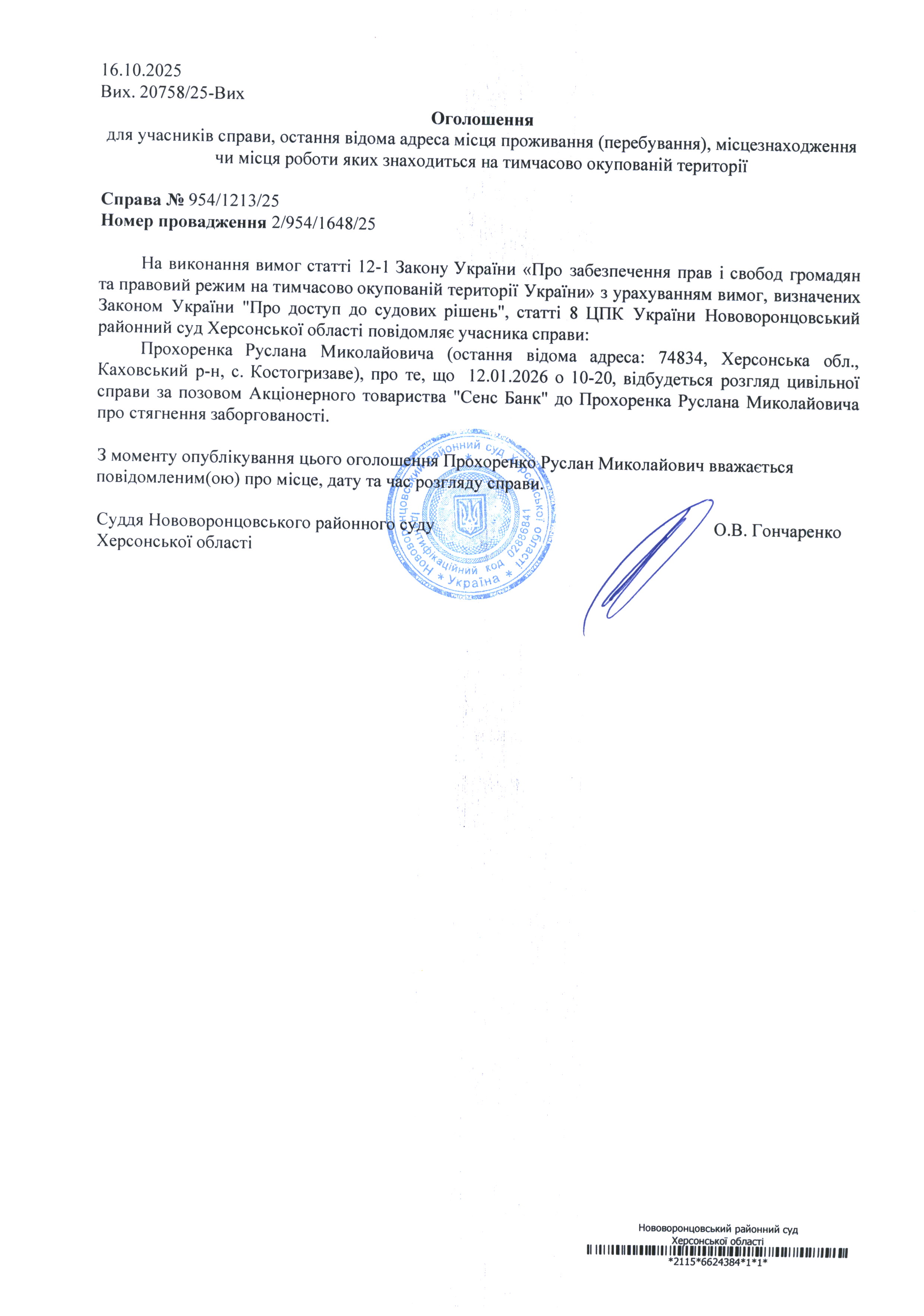 До суду викликається Прохоренко Руслан Миколайович на 10-20 12 січня 2026 року