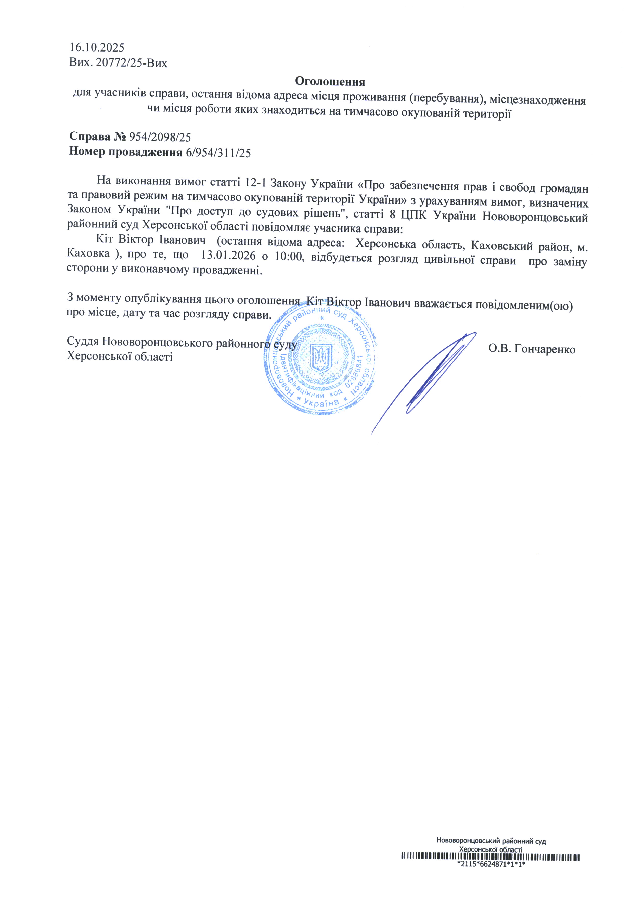 До суду викликається Кіт Віктор Іванович на 10-00 13 січня 2026 року