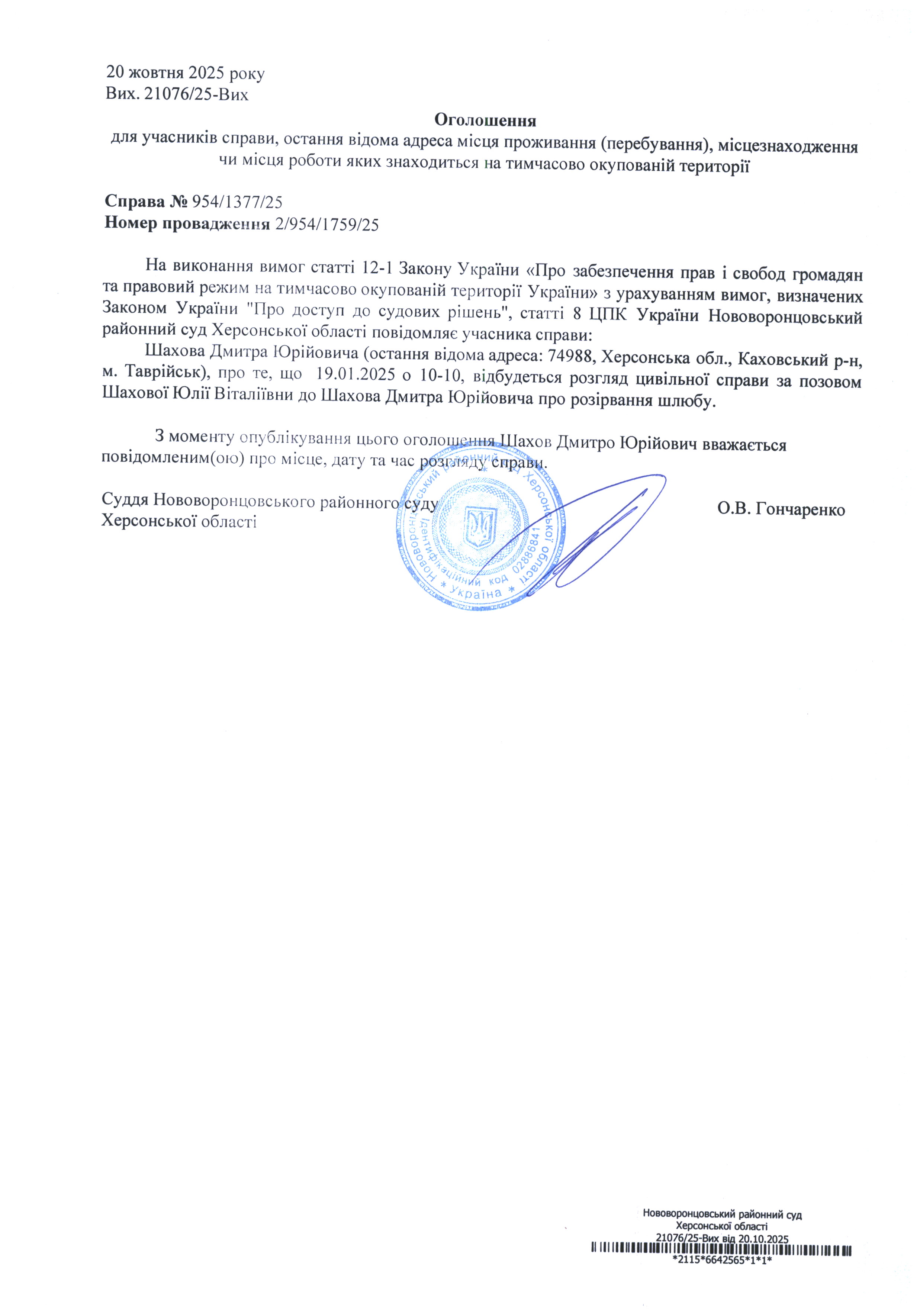 До суду викликається Шахов Дмитро Юрійович на 10-10 19 січня 2026 року