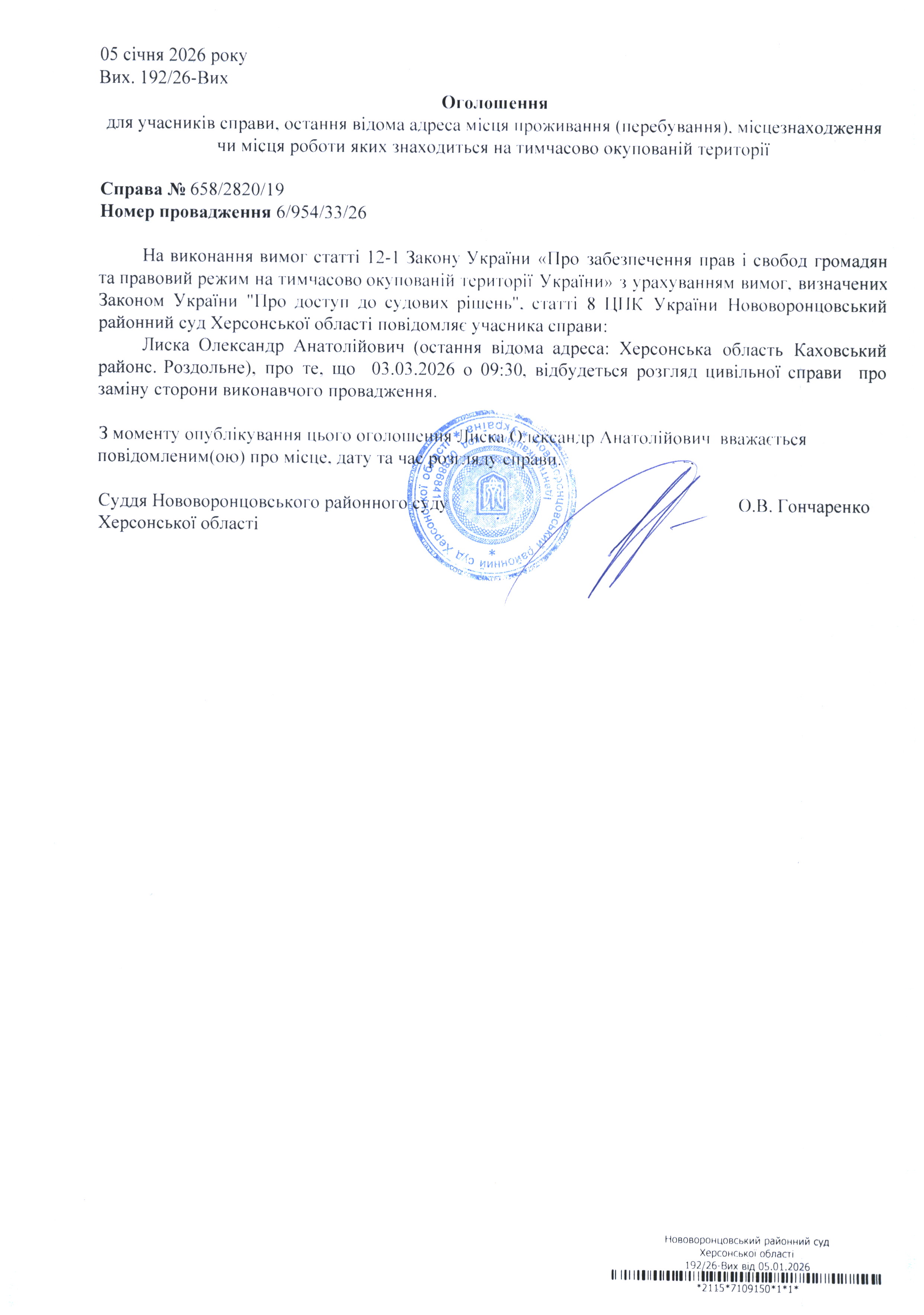 До суду викликається Лиска Олександр Анатолійович на 9 год. 30 хв. 3 березня 2026 року