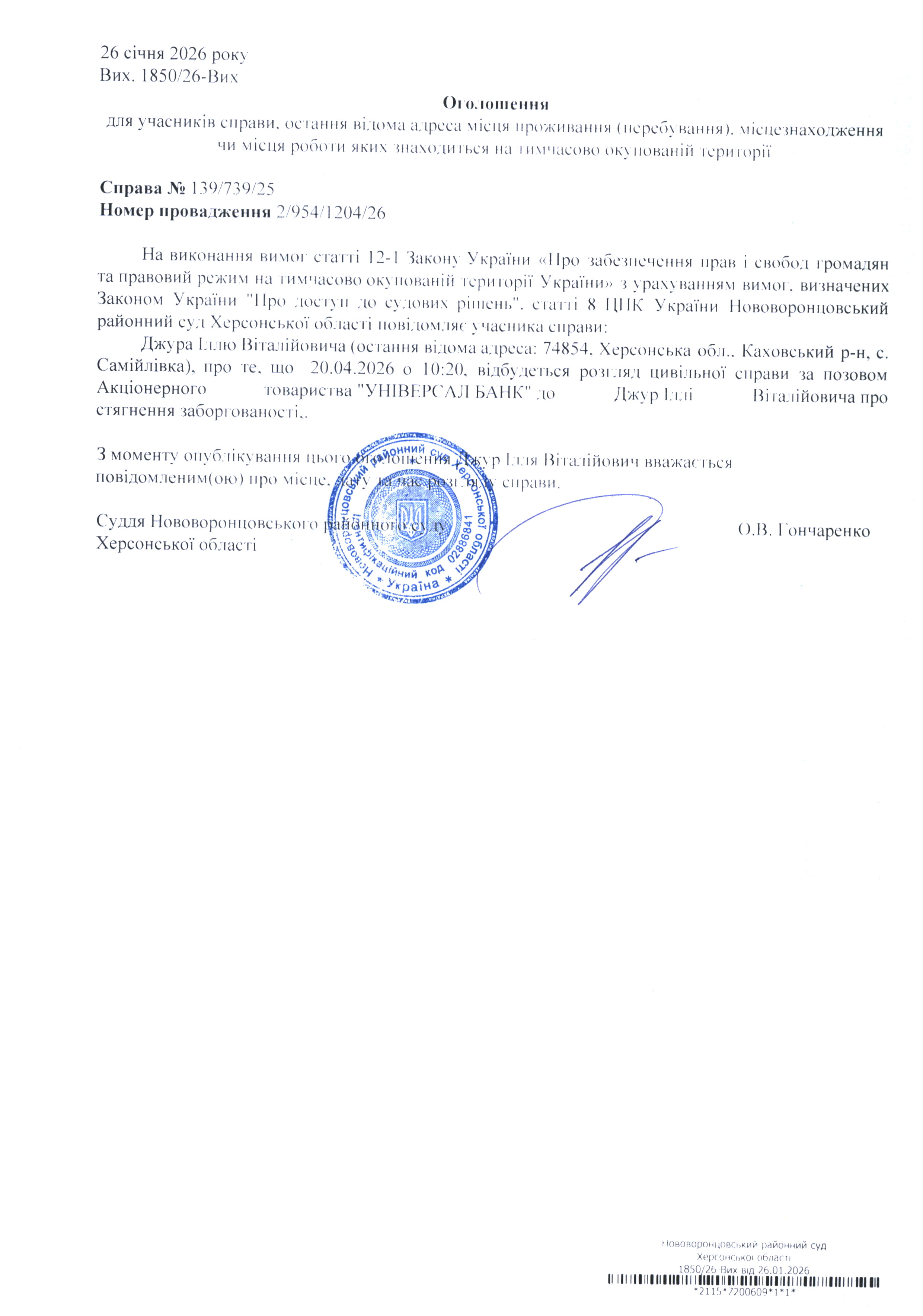 До суду викликається Джур Ілля Віталійович на 10 год. 20 хв. 20 квітня 2026 року